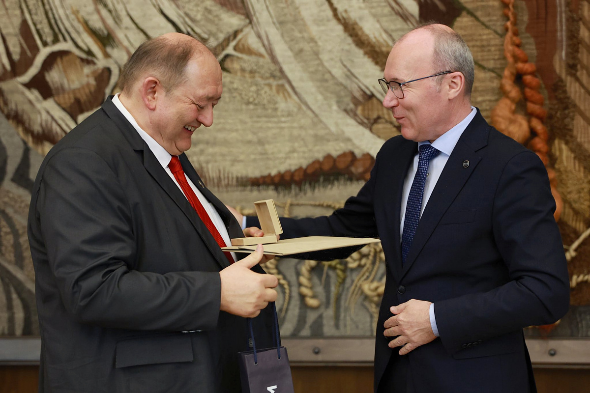 Az ünnepélyes esemény egyik kiemelt pillanata volt, amikor Leitold László elnök részére Pro Meritis elismerést adományoztak.